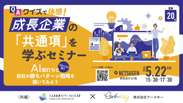 ぐんま未来イノベーションLABは、LAB会員である株式会社アースキーと共催で、自社の強みや戦略を言語化し、再現性ある成長につなげることを目的とした標記セミナーを開催します。